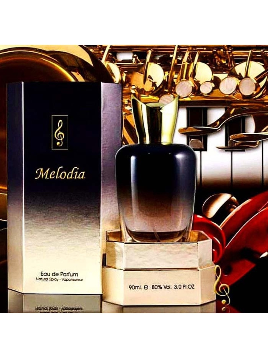 Melodia is a feminine sophisticatedly exotic fragrance of flowers, musk. The heart notes include mysterious purple, intoxicating exotic sweet Ylong-Ylong scent. The long trail is woven from creamy woody sandalwood with balsamic notes, and sweetly spicy, warm and earthy pachoulis. The fragrance is supplemented by piquant tandem of vanilla and animal musk.